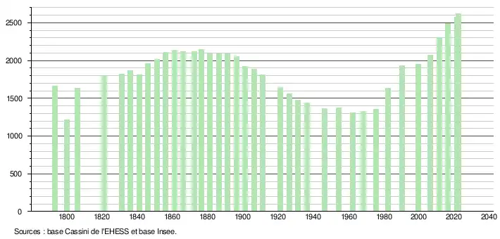 - ↑ Fiches Insee - Populations de référence de la commune pour les années 2006, 2007, 2008, 2009, 2010, 2011, 2012, 2013, 2014, 2015, 2016, 2017, 2018, 2019, 2020, 2021 et 2022.