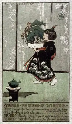 - ↑ | Voir des exemples de céramiques et textiles ornés des motifs des trois amis de l'hiver.