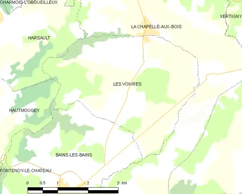 - ↑ « Orthodromie entre Les Voivres et La Vôge-les-Bains », sur fr.distance.to (consulté le ).