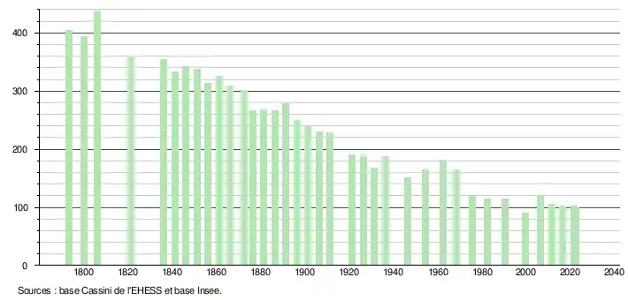 (Sources : Ldh/EHESS/Cassini jusqu'en 1999[25] puis Insee à partir de 2006[26].)