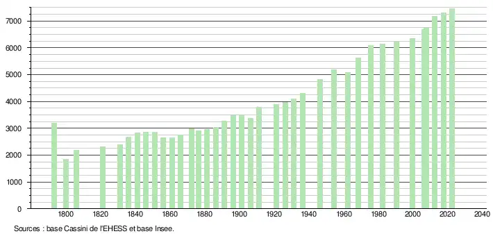 - ↑ Fiches Insee - Populations de référence de la commune pour les années 2006, 2007, 2008, 2009, 2010, 2011, 2012, 2013, 2014, 2015, 2016, 2017, 2018, 2019, 2020, 2021 et 2022.