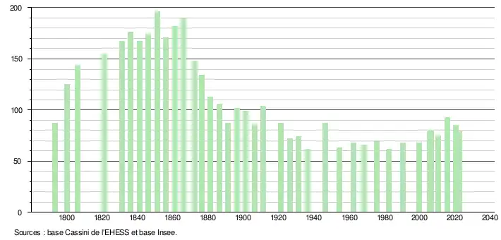 - ↑ Population municipale de référence en vigueur au 1er janvier 2025, millésimée 2022, définie dans les limites territoriales en vigueur au 1er janvier 2024, date de référence statistique : 1er janvier 2022.