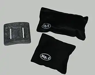 - utilisé de plus en plus fréquemment par les chasseurs sous-marins, il est constitué généralement de deux plombs ventraux et d'une plaque de plomb dorsale qui permet de mieux répartir le lestage et de soulager ainsi les reins;