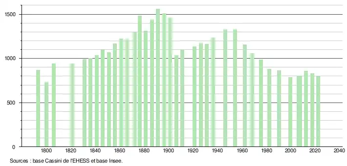 - ↑ Fiches Insee - Populations de référence de la commune pour les années 2006, 2007, 2008, 2009, 2010, 2011, 2012, 2013, 2014, 2015, 2016, 2017, 2018, 2019, 2020, 2021 et 2022.