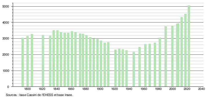 - ↑ Population municipale de référence en vigueur au 1er janvier 2025, millésimée 2022, définie dans les limites territoriales en vigueur au 1er janvier 2024, date de référence statistique : 1er janvier 2022.
