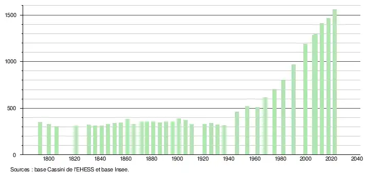 - ↑ Fiches Insee - Populations de référence de la commune pour les années 2006, 2007, 2008, 2009, 2010, 2011, 2012, 2013, 2014, 2015, 2016, 2017, 2018, 2019, 2020, 2021 et 2022.