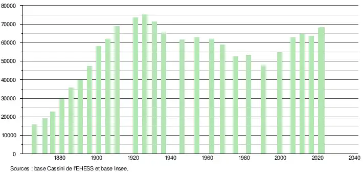 - ↑ Fiches Insee - Populations de référence de la commune pour les années 2006, 2007, 2008, 2009, 2010, 2011, 2012, 2013, 2014, 2015, 2016, 2017, 2018, 2019, 2020, 2021 et 2022.
