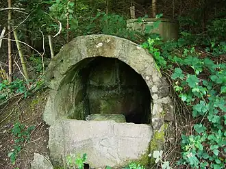 - ↑ Cette ancienne fontaine est actuellement enclavée sur une propriété privée du Raincorne