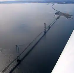 Le pont de l'Est du Grand Belt, en danois Storebæltsbroen relie par voie routière les deux plus grandes îles du Danemark que sont Seeland (où se trouve la capitale Copenhague) et Fionie.
