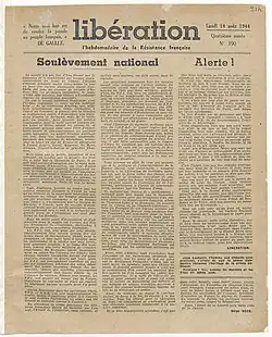 Libération est un journal hebdomadaire édité clandestinement entre le et le . Créé par Christian Pineau, il était le journal du mouvement de Résistance Libération-Nord.