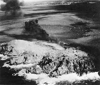 - ↑ Contrairement à ce qui est parfois affirmé, le bombardement de Cézembre n'est pas la première utilisation de bombes au napalm sur le front européen. Elles furent utilisées un peu auparavant mais à beaucoup moins grande échelle dans le Pacifique et lors de la bataille de Normandie.