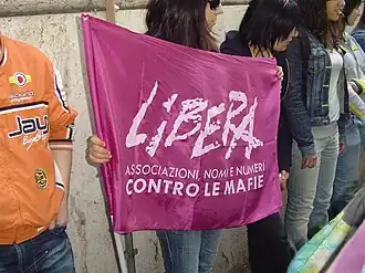 Libera. Associazioni, nomi e numeri contro le mafie (en français : « Libres. Associations, noms et nombres contre les mafias »), plus connue sous le nom de Libera, est une organisation non gouvernementale italienne fondée officiellement le . Libera œuvre dans la lutte contre les organisations mafieuses, la promotion de la légalité démocratique et l'éducation à la citoyenneté. L'association est également active dans la valorisation des biens confisqués aux organisations criminelles.