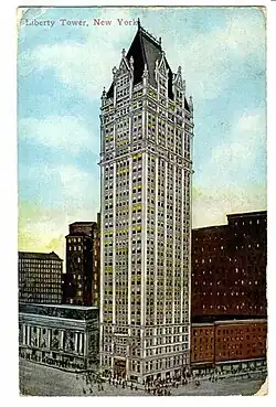 À l'emplacement de la Liberty Tower se situait un bâtiment abritant les bureaux du New York Evening Post et qui avait aussi servi de quartier général à l'American Society for the Prevention of Cruelty to Animals, fondée en 1867.