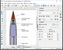 LibreOffice Draw est le module de dessin vectoriel pour schémas et illustrations simples. Il permet de manipuler des primitives graphiques simples (flèches, figures géométriques, étiquettes, cotations) par l'utilisation de calques (ou couches) et d’objets.