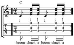 Dans les genres musicaux populaires tels que la musique country, le blues, le jazz ou le rock, un lick est un motif ou une formule[2]consistant en une courte série de notes utilisées dans les solos, les lignes mélodiques et l' accompagnement. Pour les musiciens, l'apprentissage d'un lick est une forme d'imitation.