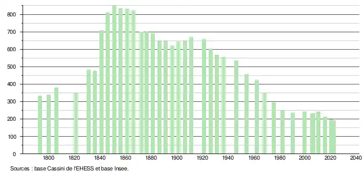 - ↑ Population municipale de référence en vigueur au 1er janvier 2025, millésimée 2022, définie dans les limites territoriales en vigueur au 1er janvier 2024, date de référence statistique : 1er janvier 2022.