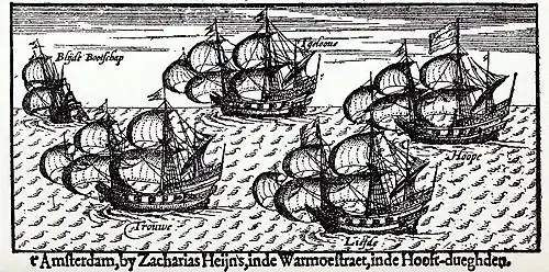 Après l'achat de cinq navires et l'enrôlement de prisonniers et d'hommes attirés par la promesse du commandant en second Simon de Cordes qu'ils seraient « pourvus de toutes les provisions nécessaires »[4], il ne manque qu'un pilote expérimenté pour guider les navires au travers des océans Atlantique et Pacifique. Ce sera l'anglais William Adams, qui, ayant entendu parler de l'expédition, débarque à Rotterdam au printemps 1598 en compagnie de douze autres anglais, dont son frère et Timothy Shotten, qui a déjà effectué une circumnavigation du globe en 1586 avec Thomas Cavendish.