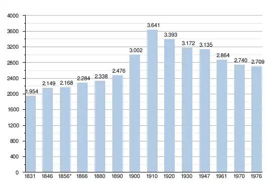 Les chiffres des années 1831 à 1970 tiennent compte des chiffres des anciennes communes fusionnées.