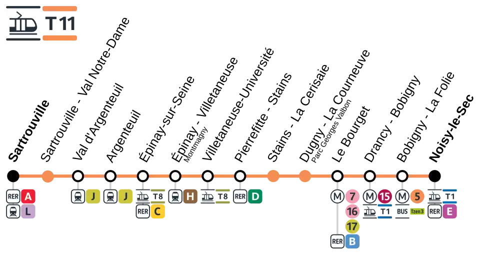 | Communes desservies | 9 Épinay-sur-Seine Montmagny Villetaneuse Pierrefitte-sur-Seine Stains Dugny La Courneuve Le Bourget Drancy |