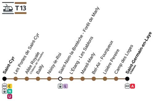 - ↑ « T13, Nouvelle ligne, Saint-Cyr > Saint-Germain », sur iledefrance-mobilites.fr, (consulté le ).