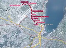 | • | Bernex, Pré-Marais | 46° 10′ 46″ N, 6° 04′ 42″ E | 10 | Bernex | Tramway | ||