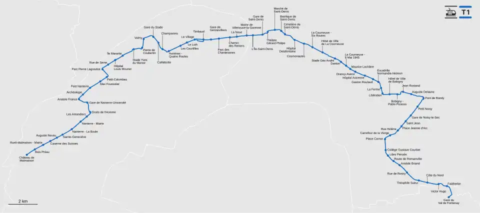 Plan schématique de la ligne T1.
