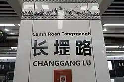 | 长堽路站 (Chánggāng lù zhàn) | Roen Cangzgangh | Rue Changgang (zh) (Changgang Lu) | ![]() |