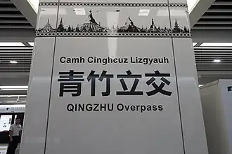 | 青竹立交站 (Qīngzhú lìjiāo zhàn) | Cinghcuz Lizgyauh | Échangeur Qingzhu (Qingzhu Overpass) | ![]() |