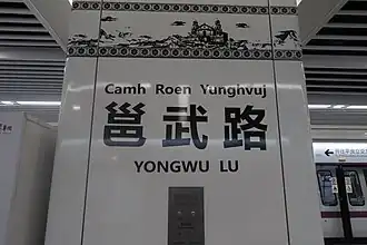 | 邕武路站 (Yōng wǔlù zhàn) | Roen Yunghvuj | Rue Yongwu (Yongwu Lu) | ![]() | |||