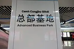 总部基地站 (Zǒngbù jīdì zhàn) Cungjbu Gihdi Quartier des affaires avancées (zh) (Advanced Business Park) Ligne 3
