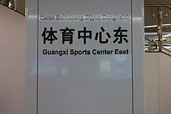 体育中心东站 (Tǐyù zhōngxīn dōng zhàn) Baihdoeng Dijyuz Cunghsinh Centre des sports du Guangxi Est (zh) (Guangxi Sports Center East)