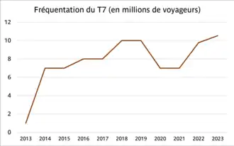 - ↑ Aurélien Accart, « Le T7 souffle sa première bougie ce week-end », sur francebleu.fr, (consulté le ).