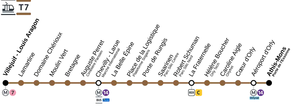 | Terminus | Villejuif - Louis Aragon Athis-Mons - Porte de l'Essonne |