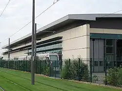 Les rames de la ligne sont entretenues par le centre de maintenance des tramways (CdM) d'Orléans-la-Source[40]. Il est relié à la ligne A, au nord au terminus Hôpital de la Source et au sud à la station Hôpital - Accueil, dans les deux cas par une voie unique. Le centre est placé sur une étroite bande de terrain entre le nouvel hôpital d'Orléans et la route départementale 2020. Il est l’œuvre du cabinet d'architecte orléanais L'Heudé et l'Heudé en collaboration avec Vaconsin-Gailledrat et aura coûté près de 15,24 millions d'euros[41].