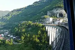 Une rame FLIRT sur le viaduc de Saint-Ursanne en 2010. | |