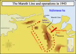 La bataille de Mareth a lieu du au . Elle coïncide avec la pression exercée alors au centre et au nord de la Tunisie par les forces alliées sur les forces de l'Axe commandées par le général Hans-Jürgen von Arnim. Effectivement, au même moment, les Alliés commencent à retrouver la suprématie aérienne et maritime dans le bassin méditerranéen.