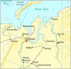 - ↑ (en) « Gazprom extends Arctic railway », sur barentsobserver.com, (consulté le )