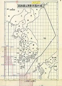 Le , le président de la première république de Corée du Sud : Syngman Rhee, proclame unilatéralement la mise en place d'une délimitation territoriale marquant l'étendue de la souveraineté coréenne, au-delà de la péninsule coréenne. L'espace marin ainsi circonscrit, au large des côtes coréennes, pouvait atteindre jusqu'à 200 milles marins (370,4 km)[2]. Cette ligne de démarcation territoriale a pour but de protéger les ressources maritimes naturelles de la Corée, de la surface au fond de la mer du Japon. Elle interdit, par conséquent, aux navires de pêche non-coréens de naviguer derrière la ligne, et en particulier autour des rochers Liancourt[2].
