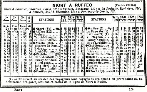 - 1 2 V. P., « Ligne de Niort à Ruffec », La Vie du Rail, no 1225, , p. 2.