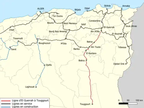 | Villes desservies | Aïn M'lila, Batna, Aïn Touta, El Kantara, Biskra, Touggourt |