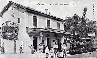 - ↑ « Décret no 58-5 du portant déclassement de certaines lignes et sections de lignes de chemin de fer d'intérêt général en Algérie et déclarant d'utilité publique les travaux de mise à voie normale de la ligne de chemin de fer à voie étroite de Perrégaux à Mostaganem, avec embranchement sur Arzew, et de la ligne de Biskra à Touggourt » [PDF], sur Légifrance, (consulté le ), p. 248.