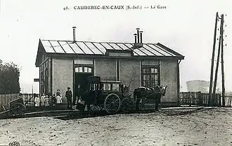 La grande ligne de Paris au Havre, achevée en 1847, ne suivait pas, entre Rouen et le grand port sur la Manche, le cours de la Seine mais s’élevait sur le plateau cauchois, délaissant ainsi les nombreuses localités industrielles qui s’égrainaient sur la rive droite du fleuve[2]. Après la guerre de 1870, les autorités départementales de la Seine-Inférieure débattirent du projet d’établir une voie ferrée d’intérêt local longeant les rives de la Seine. La Compagnie des chemins de fer de l'Ouest répliqua par un projet d’antenne desservant, à partir de la gare de Barentin, les localités de Duclair et de Caudebec-en-Caux en passant par la vallée de l’Austreberthe qui ne comptait pas moins de 20 filatures[3]. La ligne envisagée est déclarée d'utilité publique par une loi le 31 décembre 1875 et la concession accordée à la dite compagnie[4],[5]. La construction de la voie ferrée fut retardée en raison de l'important dénivelé existant entre la gare de Barentin-Embranchement et le centre de la commune, il s'écoula ainsi plus de cinq années avant la mise en service qui se déroula en trois étapes : la section entre Barentin-Embranchement et Barentin-Ville fut ouvert le 1er février 1881 pour les seuls trains de marchandises, le tronçon de Barentin-Ville à Duclair fut inauguré à tout trafic le 20 juin de la même année, la dernière portion de la ligne entre Duclair et Caudebec-en-Caux-Voyageurs fut achevée le 31 juillet 1882[6]. La desserte du port de Duclair par embranchement ne fut terminée qu'en 1890[7].