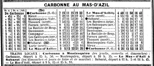 - ↑ « CFSO - Ligne de Carbonne au Mas d'Azil », Lignes économiques, sur chemins.de.traverses.free.fr (consulté le ).
