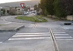 La plateforme était pour l'essentiel construite directement au sol, sans remblai ni déblai, sauf pour le franchissement de trois mamelons, l'un en tunnel, les deux autres en tranchées. Les voies urbaines rencontrées étaient franchies à niveau, sauf l'avenue Subilia, tracée dans une légère dépression (le « Vallat de Roubaud ») et franchie en viaduc.