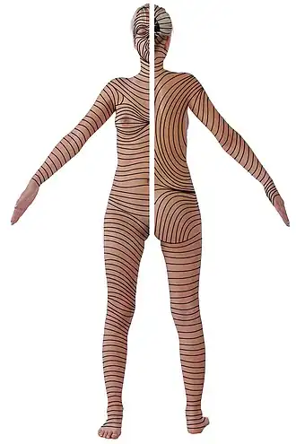 Les lignes de Langer sont visibles sur la surface palmaire des doigts, et présentent des motifs circulaires au niveau du cou et du tronc.