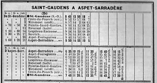 La ligne partait de la gare de Saint-Gaudens et terminait à la gare d'Aspet-Sarradère.