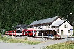 La ligne part de la gare de Saint-Gervais-les-Bains-Le Fayet, où elle est en correspondance avec le réseau SNCF à voie normale (terminus de la ligne en provenance d'Aix-les-Bains, via Annecy et la Roche-sur-Foron), ainsi qu'avec le tramway du Mont-Blanc (TMB), qui est un chemin de fer à crémaillère[47]. Cette gare reçoit des TGV en provenance de Paris en pleine saison d'hiver et d'été. Elle dispose d'un faisceau à voie métrique assez important[48], avec notamment une remise-ateliers à trois voies, une plaque tournante et une machine à laver.