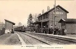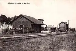 - ↑ Note : l'habitation située à proximité immédiate — de l'ancienne halte — ayant été construite postérieurement à la suppression du service ferroviaire, elle n'a donc aucun lien avec ce dernier.