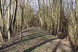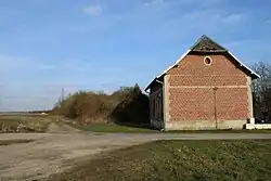 La gare de Fluiquières, aujourd'hui démolie, était située au nord du village. Le tracé de la voie est toujours visible. |
