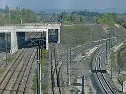 Le raccordement avec la ligne de grande vitesse se fait par un raccordement au nord de la gare TGV[6].